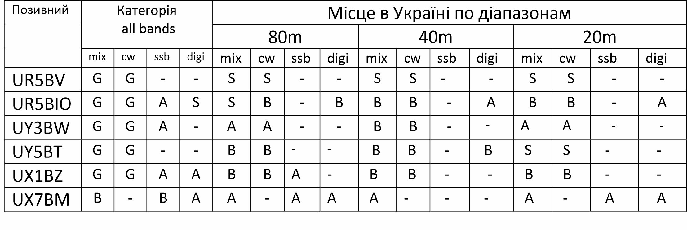 UY5BQ, UX7BM, UR5BIO.