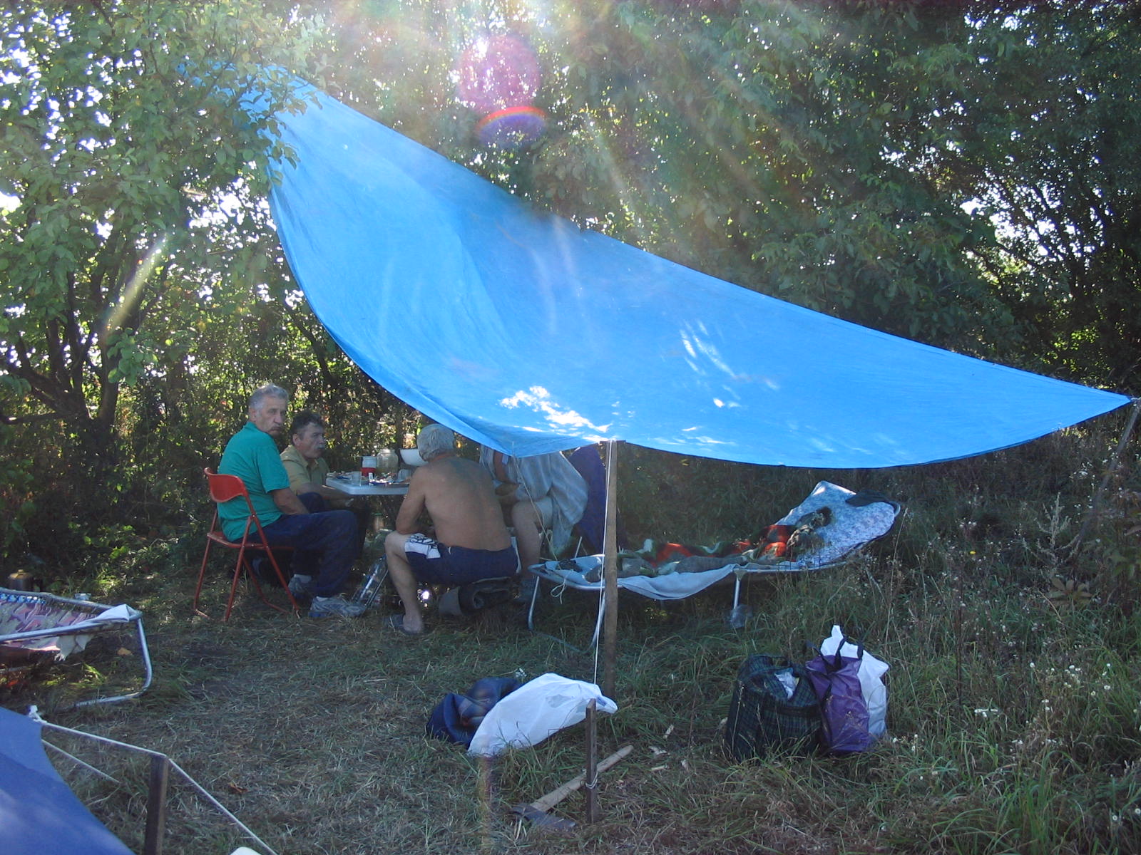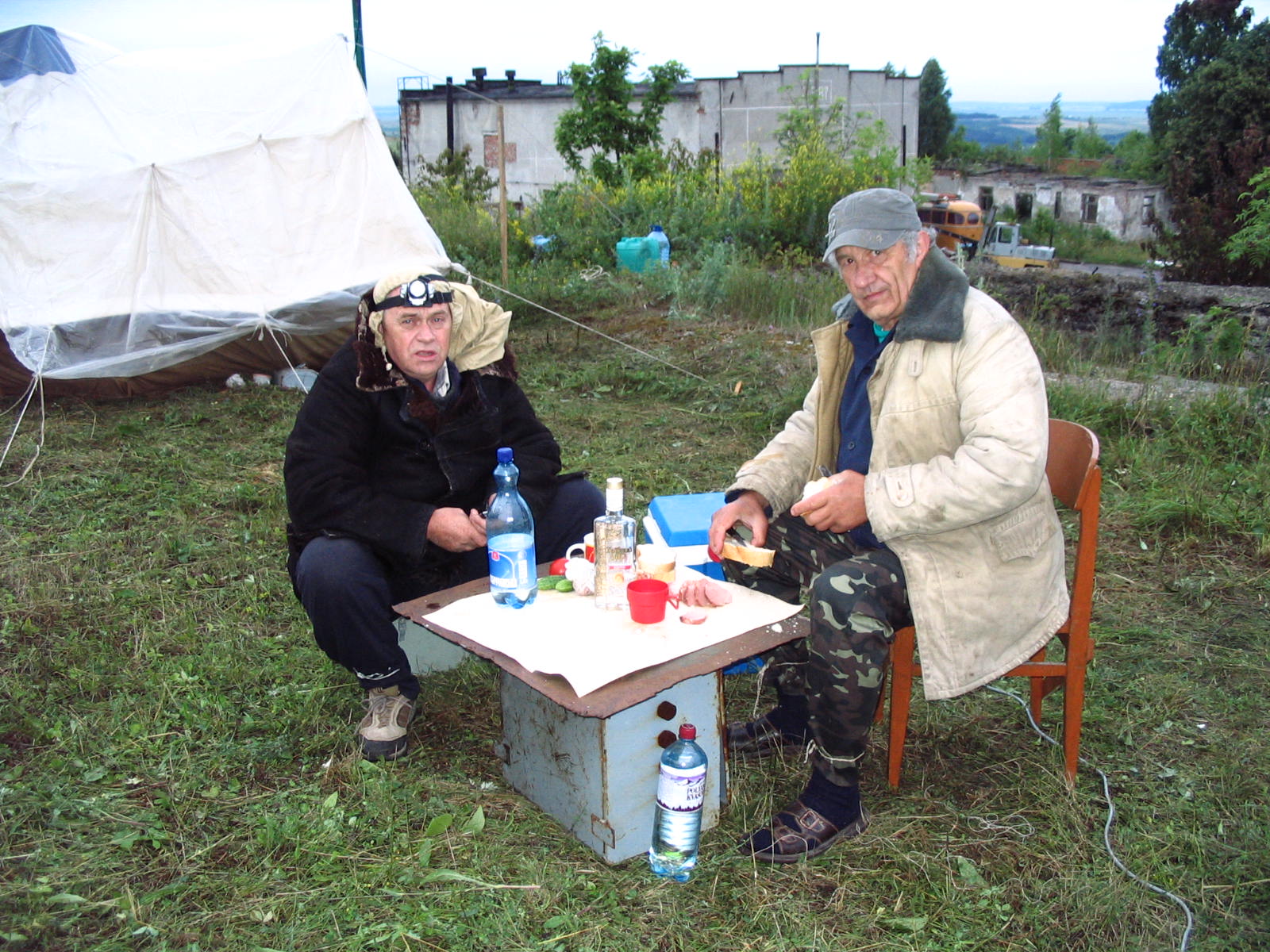 Ми сховались на дні вузького яру, котрий давав деяке укриття від вітру. Ми використали наші вейдерси і шнур із нашого альпіністського спорядження, щоб забезпечити деяку ізоляцію від холодної мокрої землі. Ми склали сумки з альпіністським спорядженням і наші маленькі особисті сумки поперек яру, щоби захиститись від вітру. Також ми розвернули наші два аварійних одіяла щоби лягти. Ми присіли навпочіпки на довгу холодну ніч. Було дуже холодно и незручно, проте ми пережили ніч, напевне, єдині, хто спав під зорями на Буве. Насправді ніхто з нас не спав довго- ми засипали тільки для того, щоби проснутись від холоду.