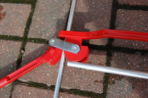 Утримуючи тиск на згинальному верстаті, зніміть іншу сторону трубки 3/8 дюйма із задньої приводної частини петлі. Тепер завершіть другий вигин трубки.